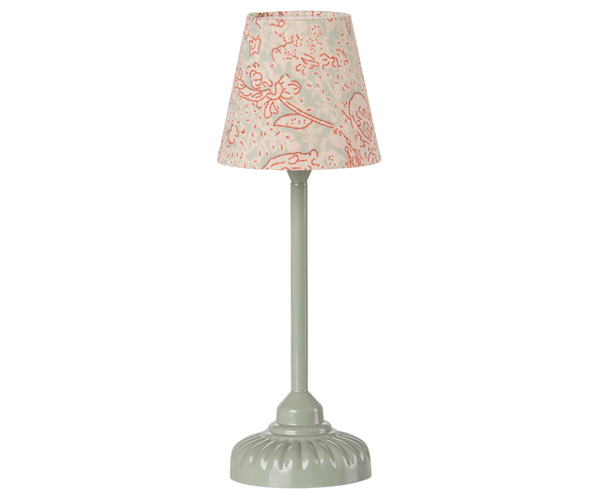 The beautiful Maileg vintage floor lamp is a must-have. The lamp will light up the room with a soft tone - remember to turn off the light when our friends go to bed. The product comes without battery. You can add a coin cell battery (CR2032).
