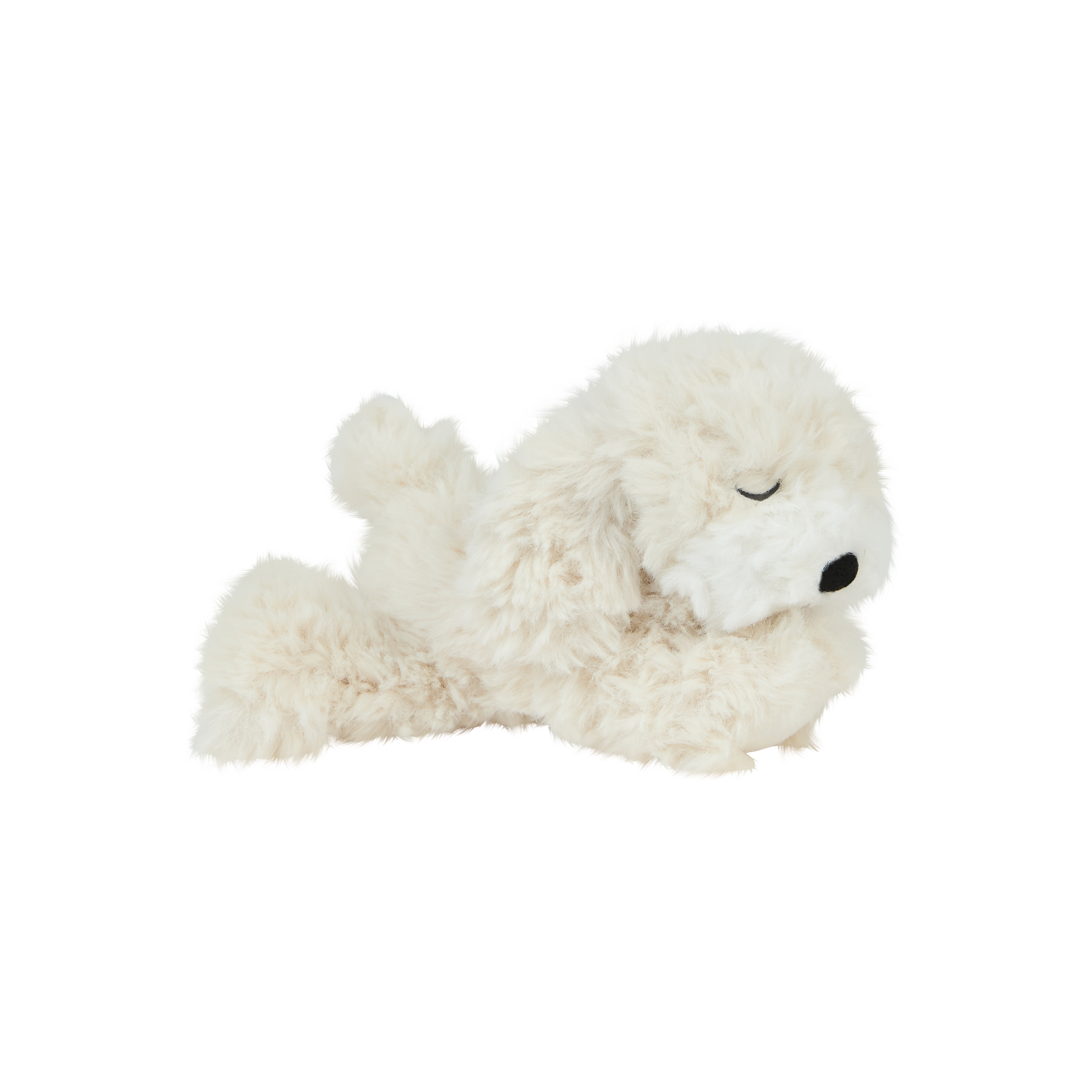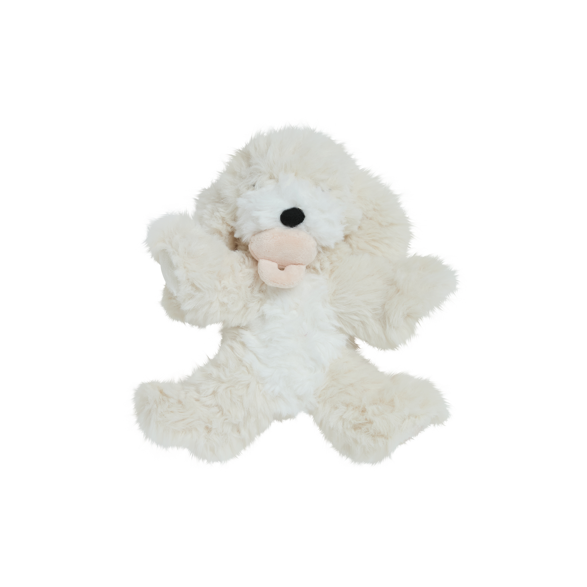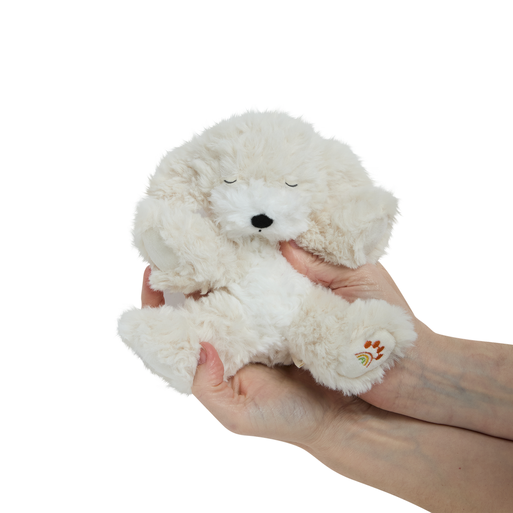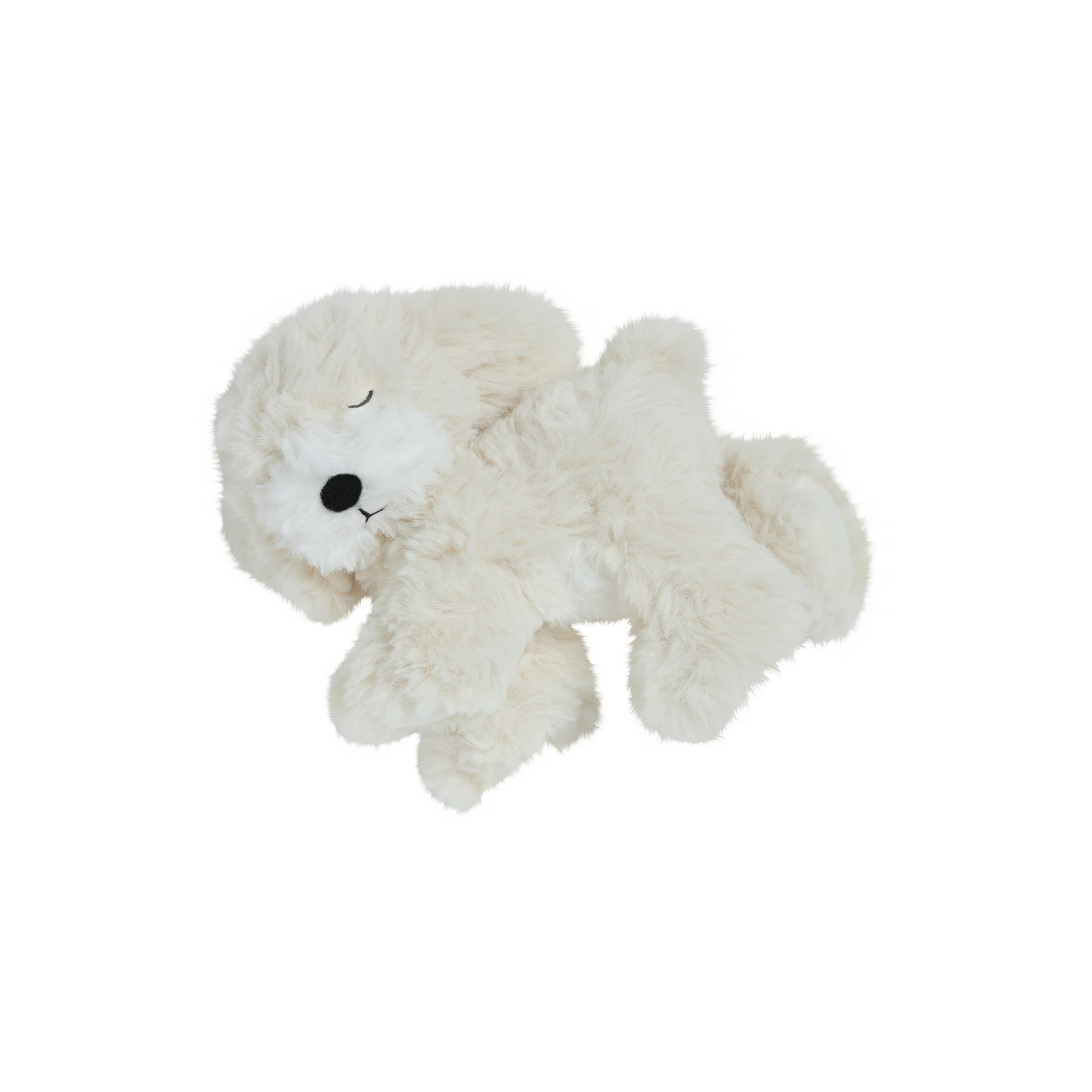 • 🤍 Soft, shaggy cream plush fur with a gentle weighted body for cosy cuddles