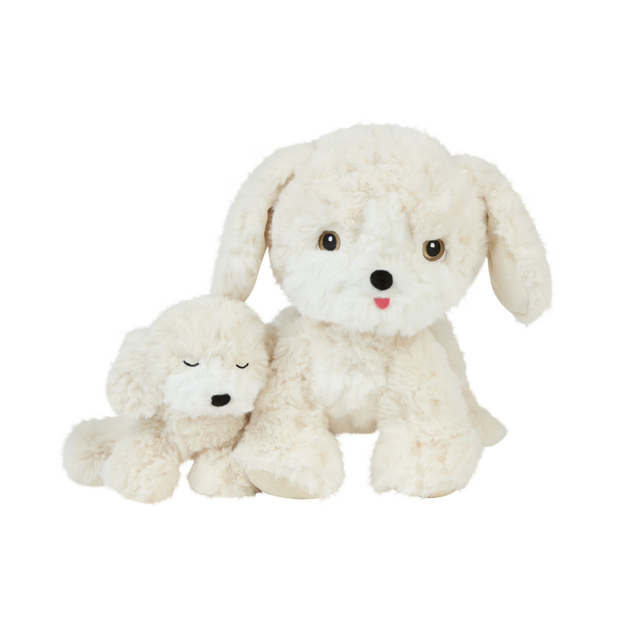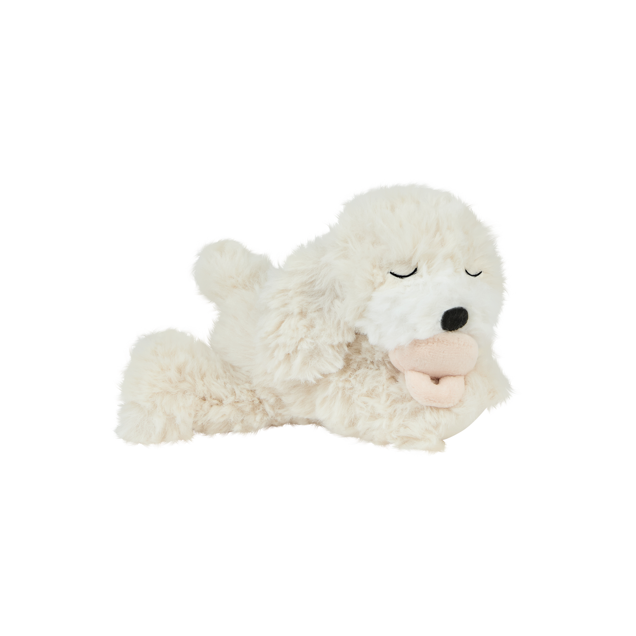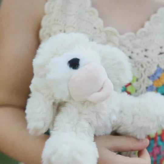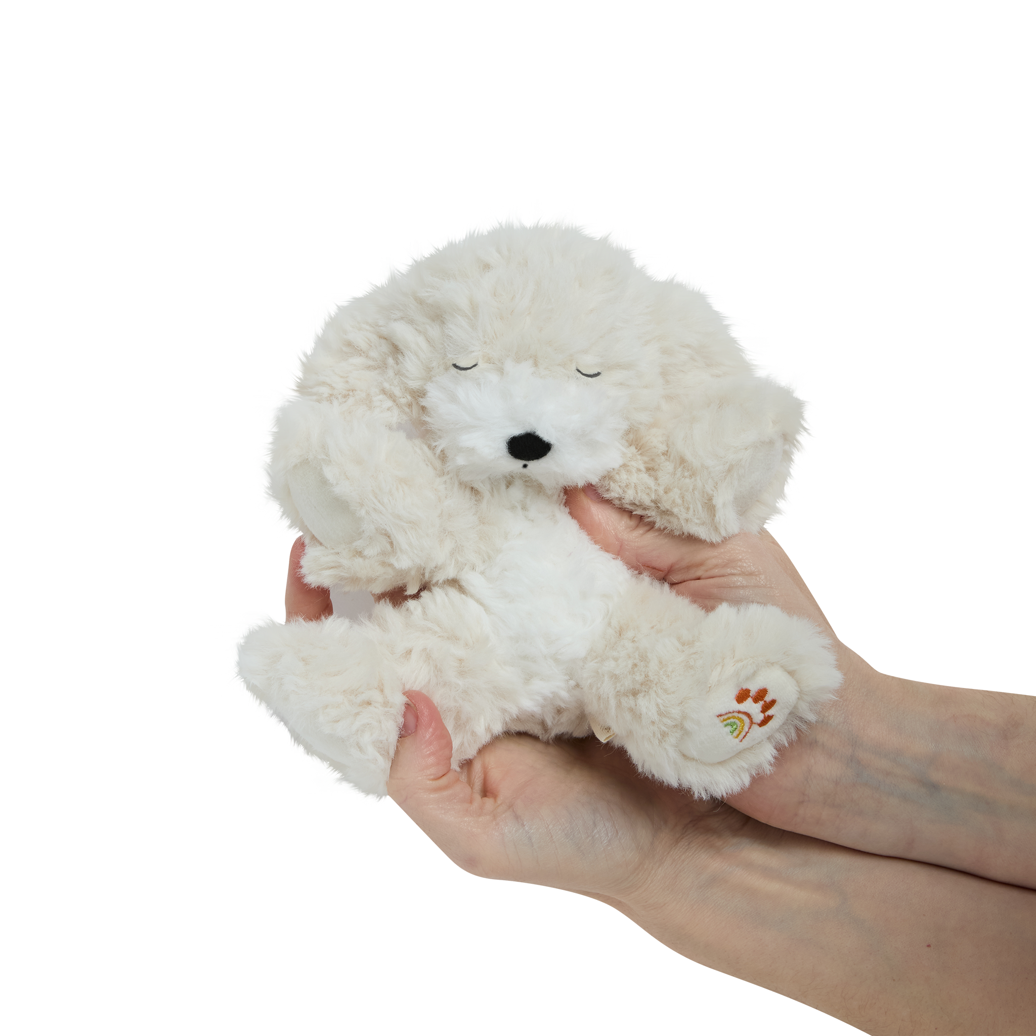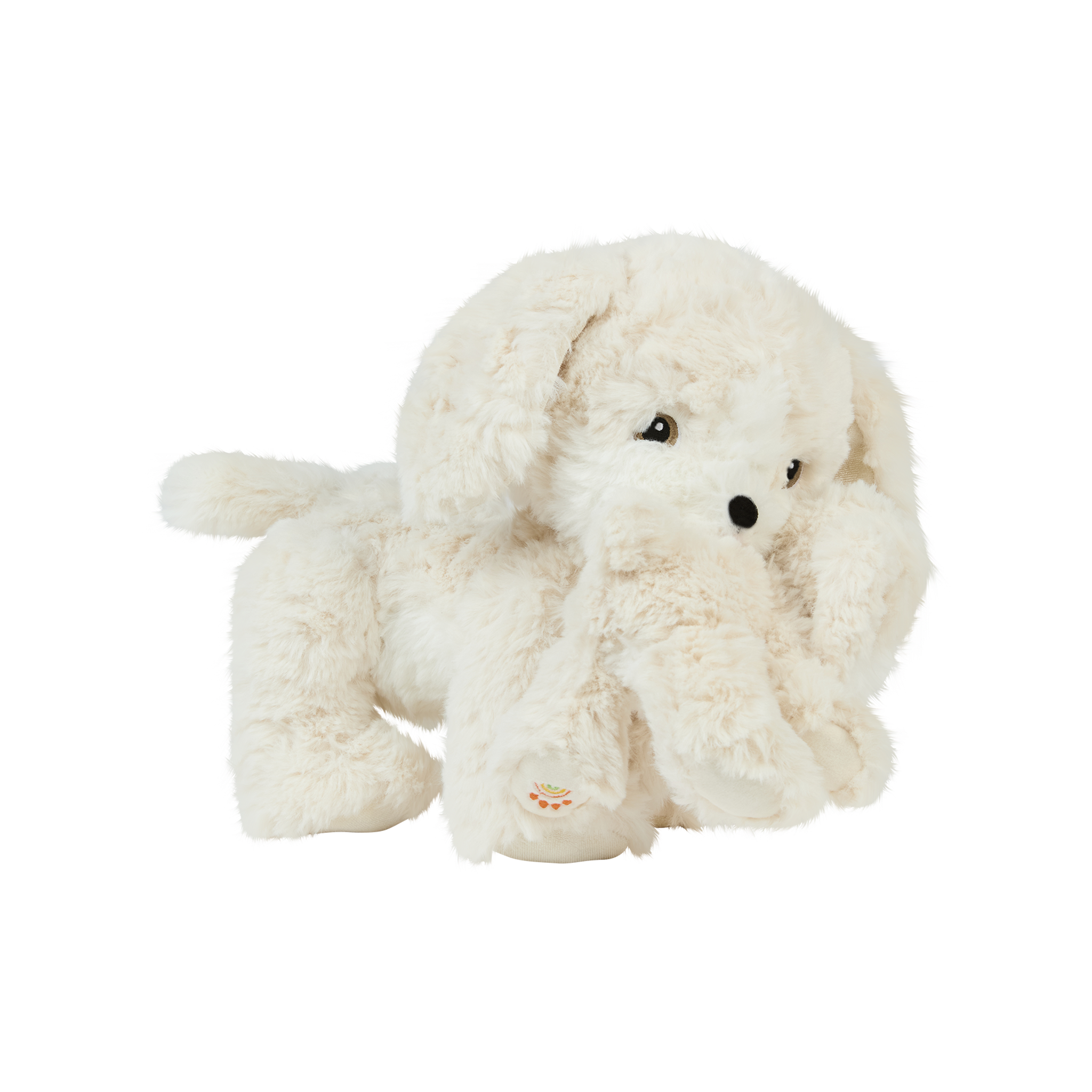 • 🤍 Soft, shaggy cream plush fur with a gentle weighted body for cosy cuddles