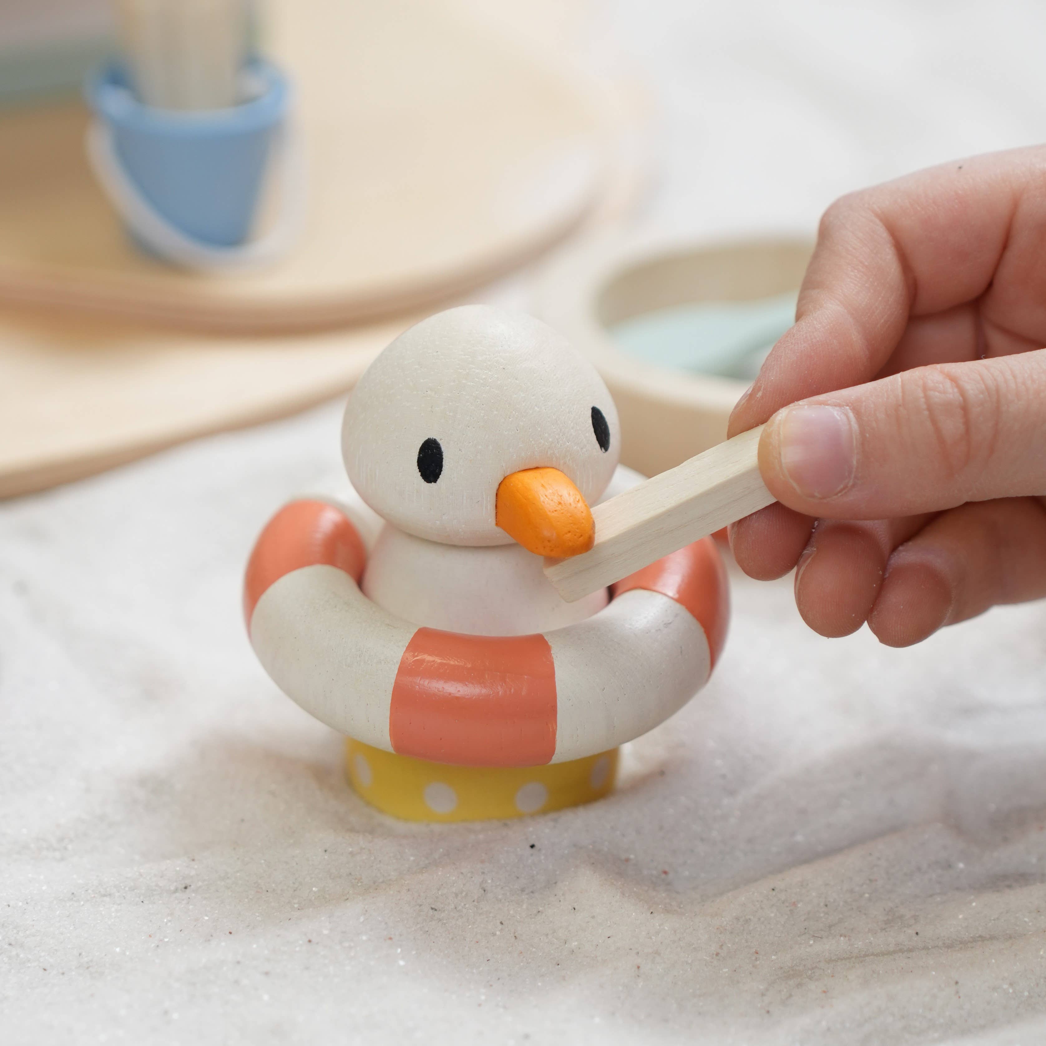 • 🧶 Includes Gully the dad seagull with knitted hat and removable wooden ring