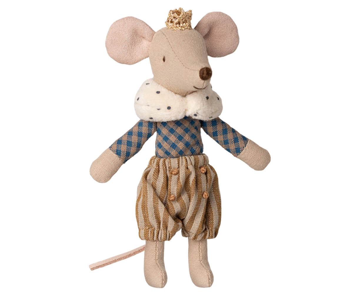 Every fairytale needs a charming prince, and Maileg’s Big Brother Prince Mouse is dressed for the role. Adorned in regal attire with a golden crown, a soft royal ruffle collar and beautifully tailored striped trousers, this noble little mouse is ready for royal adventures and enchanted play. Perfectly sized for Maileg castles and accessories, he brings a magical charm to storytelling time. Made with love and exquisite attention to detail, he’s a treasured gift for collectors and imaginative children alike.