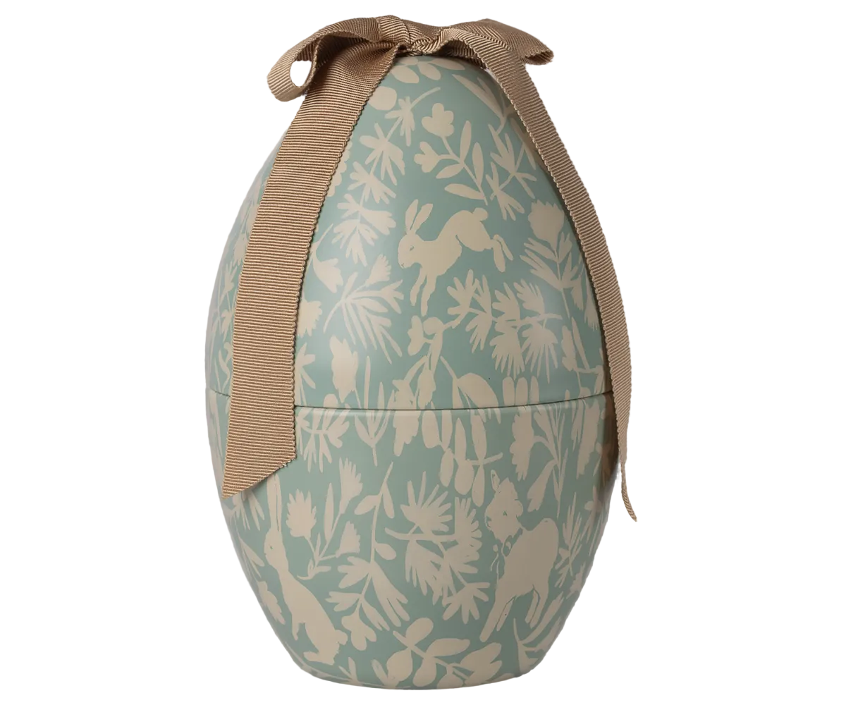 The Maileg easter egg has a beautiful new all over print. Take a good look at the print and see if you can find the different animals. The egg comes with a big soft bow on the top that gives the egg an exclusive look.