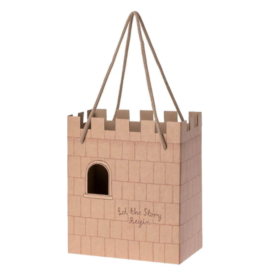 Gorgeous Cardboard Castle Gift bag inspired by the story of the "Princess and the Pea". Perfect as it is or it can be decorated and used as part of your little ones imaginary play world.