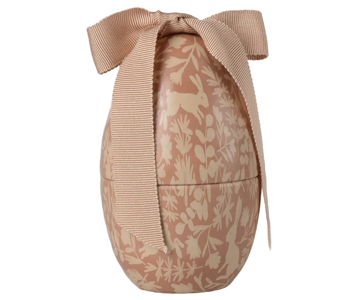 The Maileg easter egg has a beautiful new all over print. Take a good look at the print and see if you can find the different animals. The egg comes with a big soft bow on the top that gives the egg an exclusive look.