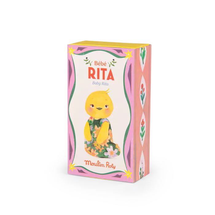 Say hello to joyful Baby Rita, the songbird of Moulin Roty’s Les Minouchkas family. Tucked into her removable floral sleeping bag with Velcro, she sings and hums her heart out under the stars, filling the night with music and cheer.