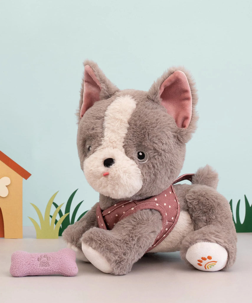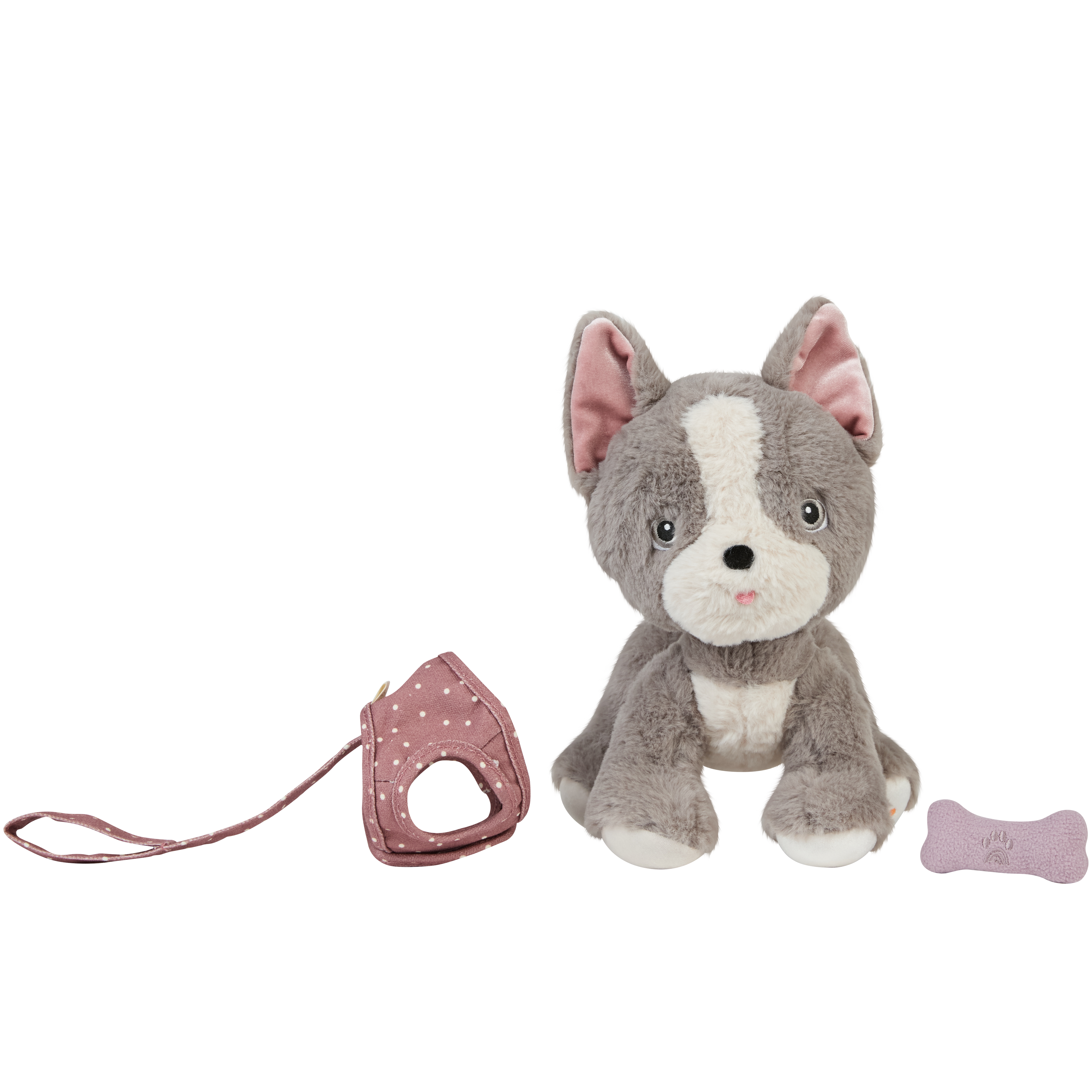 This lovable pup comes with everything he needs for walkies and playtime — a removable cotton harness and lead, plus a magnetic sherpa bone treat that he can really “hold” in his mouth. His poseable head rotates 360°, and his soft, weighted body is perfect for hugs, imaginative play, and gentle adventures.