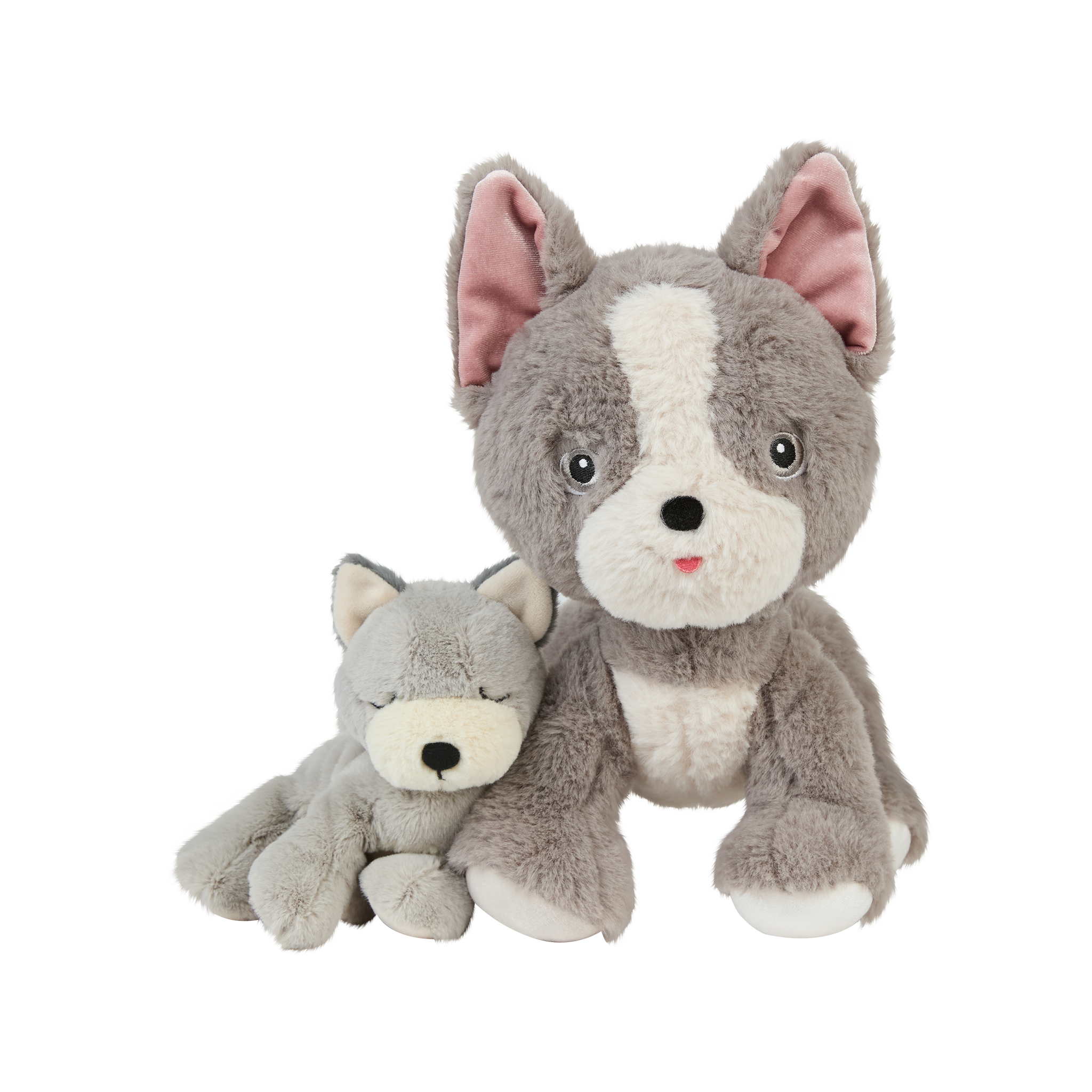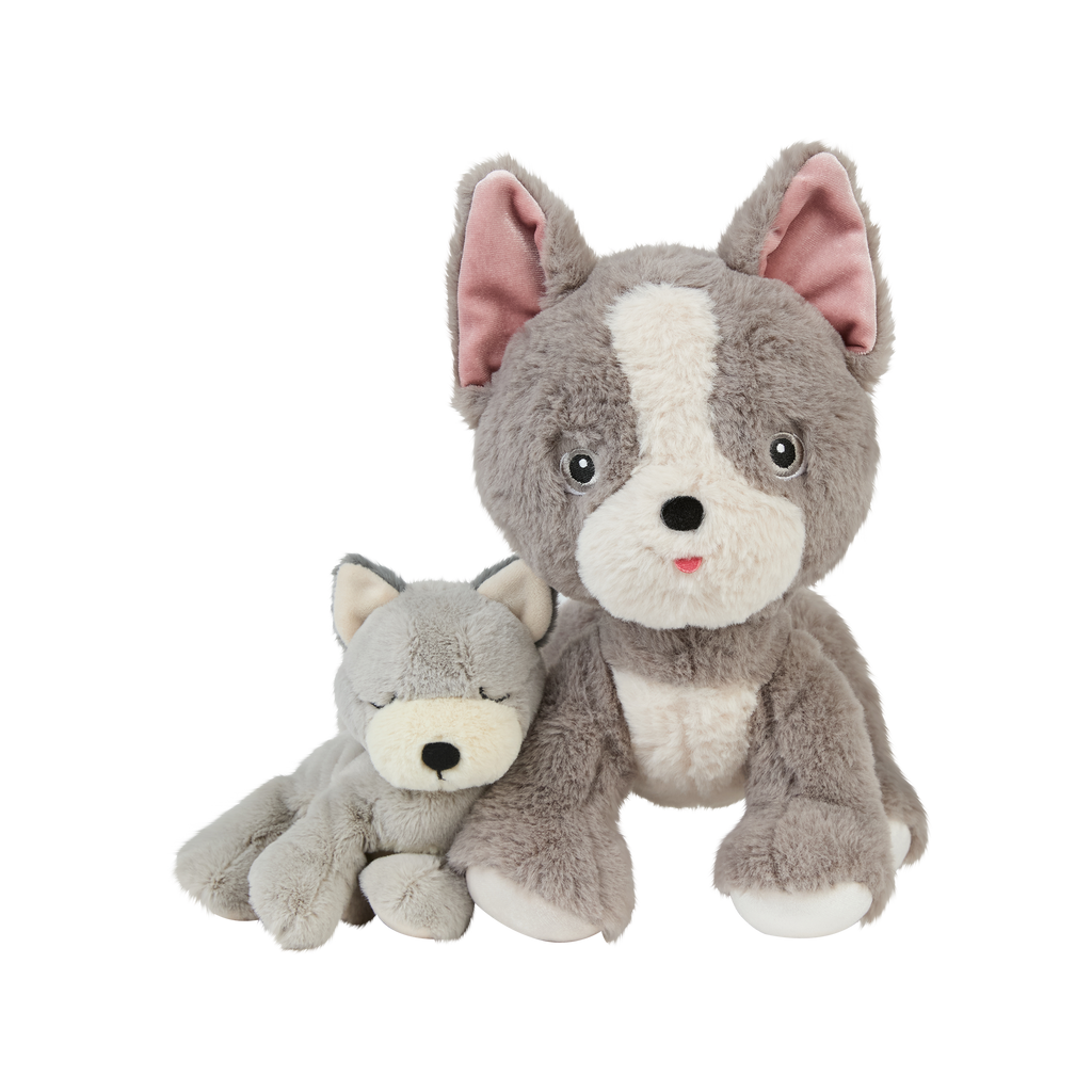 • 🐶 Adorably fluffy grey fur made from recycled plush fabric