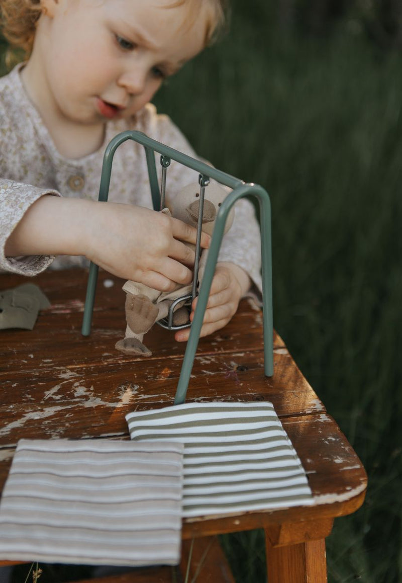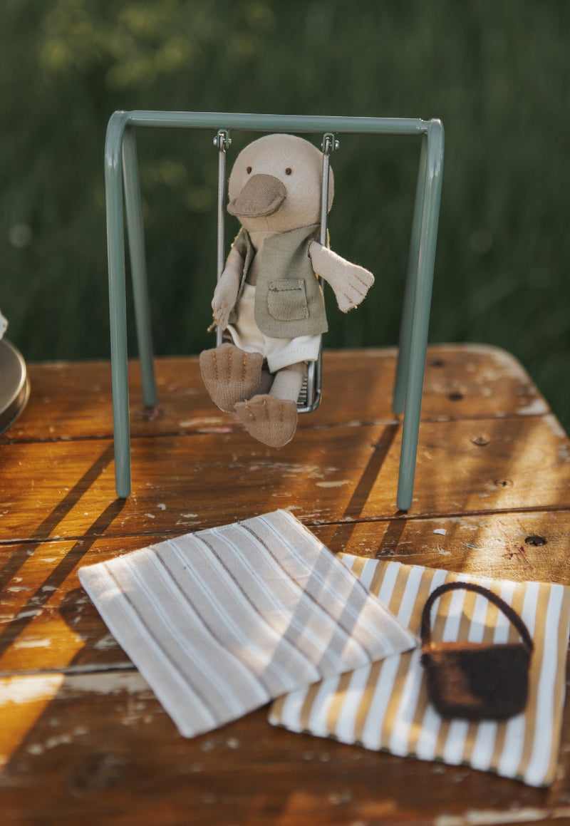 The Swing: Let your Rugaroo dolls sway the day away with the Toy Metal Swing, a nostalgic miniature playground piece designed just for the Rugaroo kangaroos, koalas, platypus, and wombats. Inspired by timeless Aussie backyards and park swings, this heirloom-quality toy sparks imagination, storytelling, and hours of open-ended play.