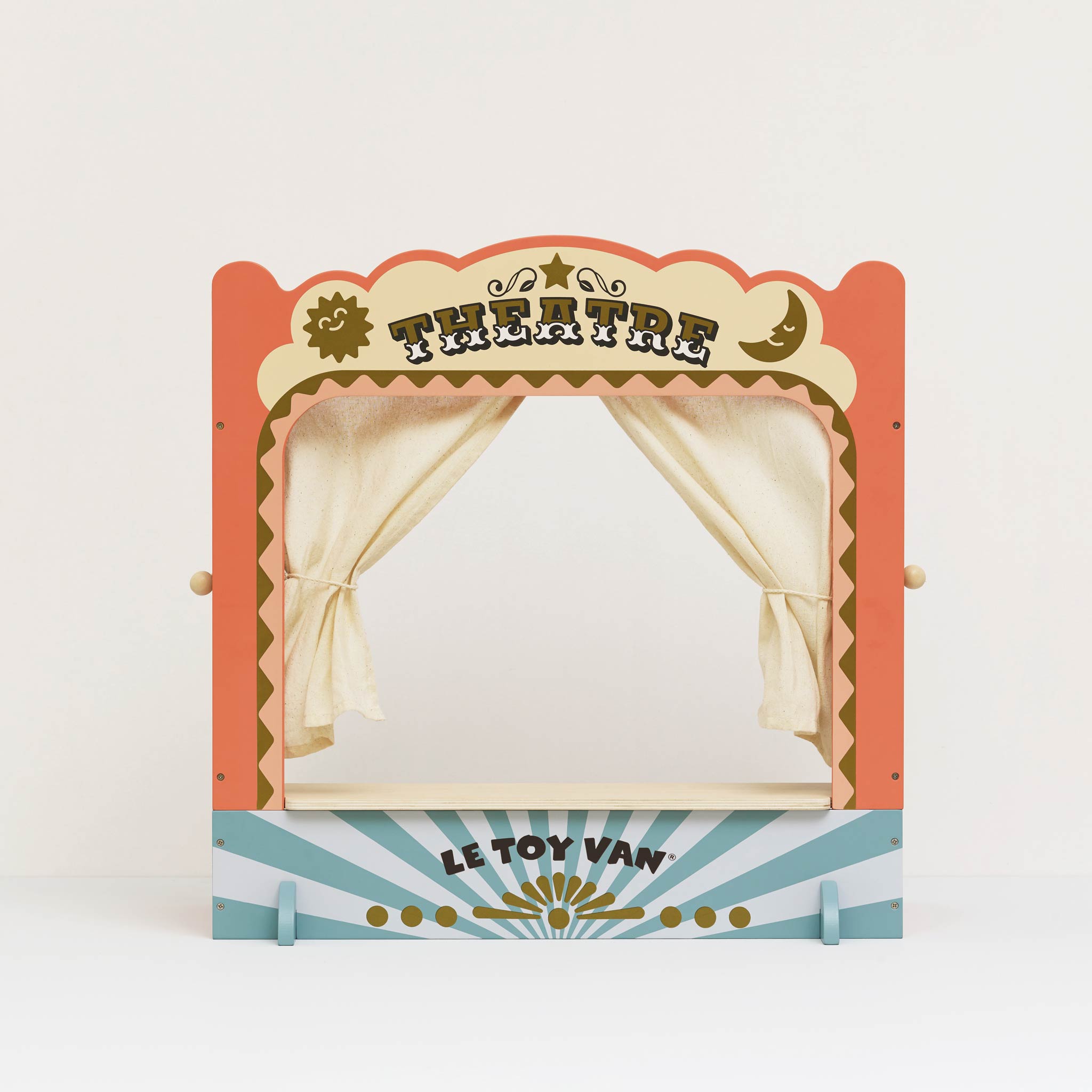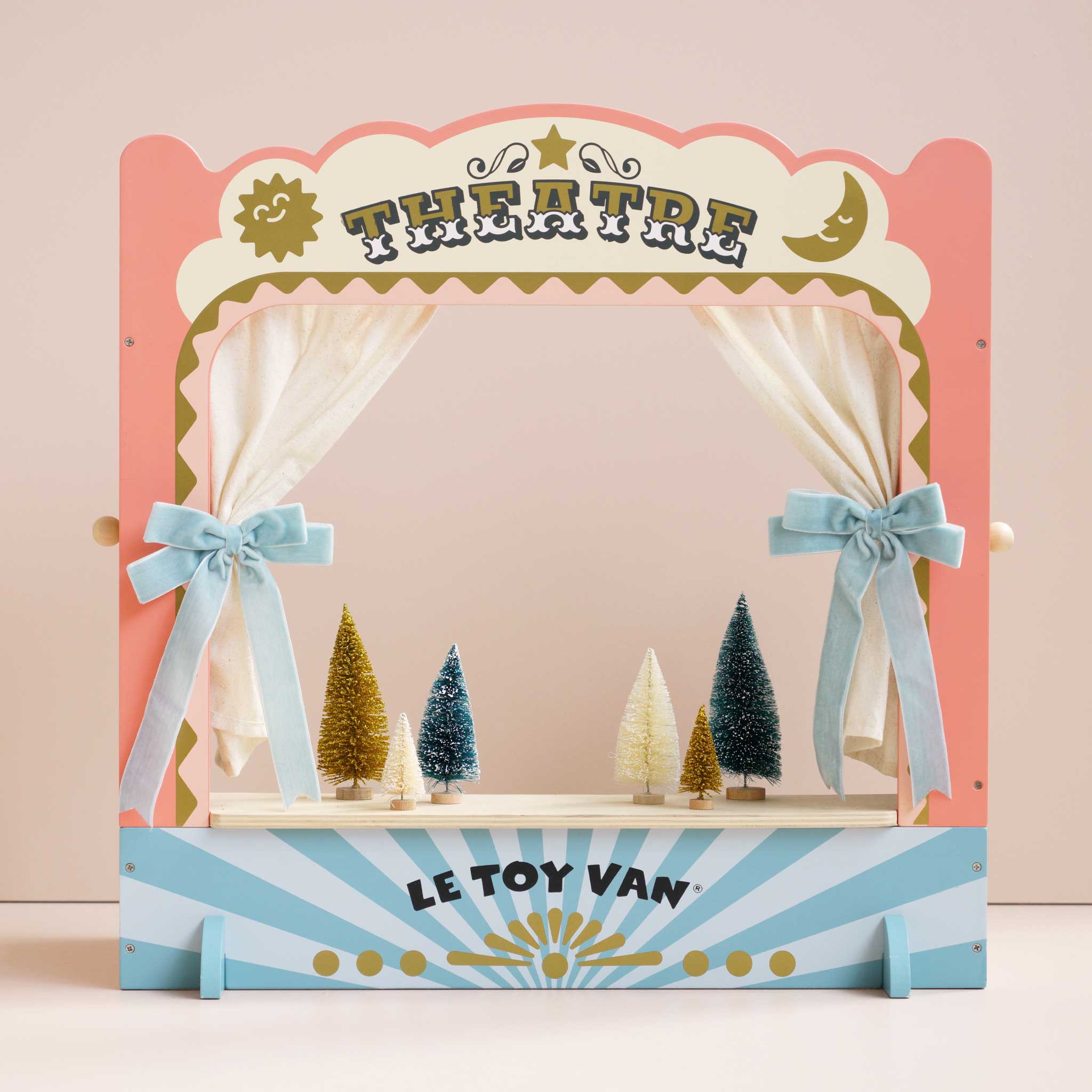 The Le Toy Van Tabletop Puppet Wooden Theatre is a timeless playroom treasure, beautifully crafted to inspire storytelling, creativity and hours of make-believe magic.